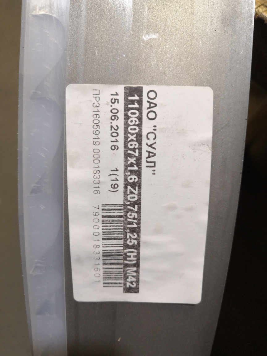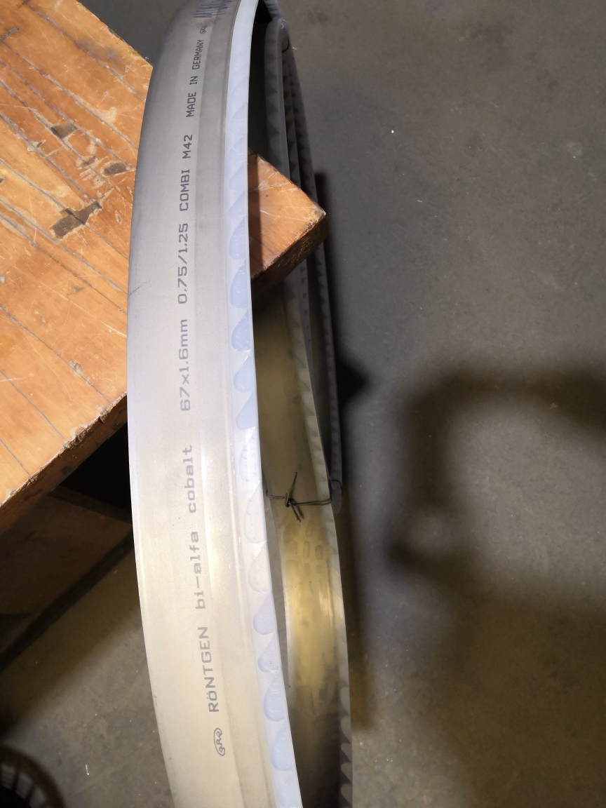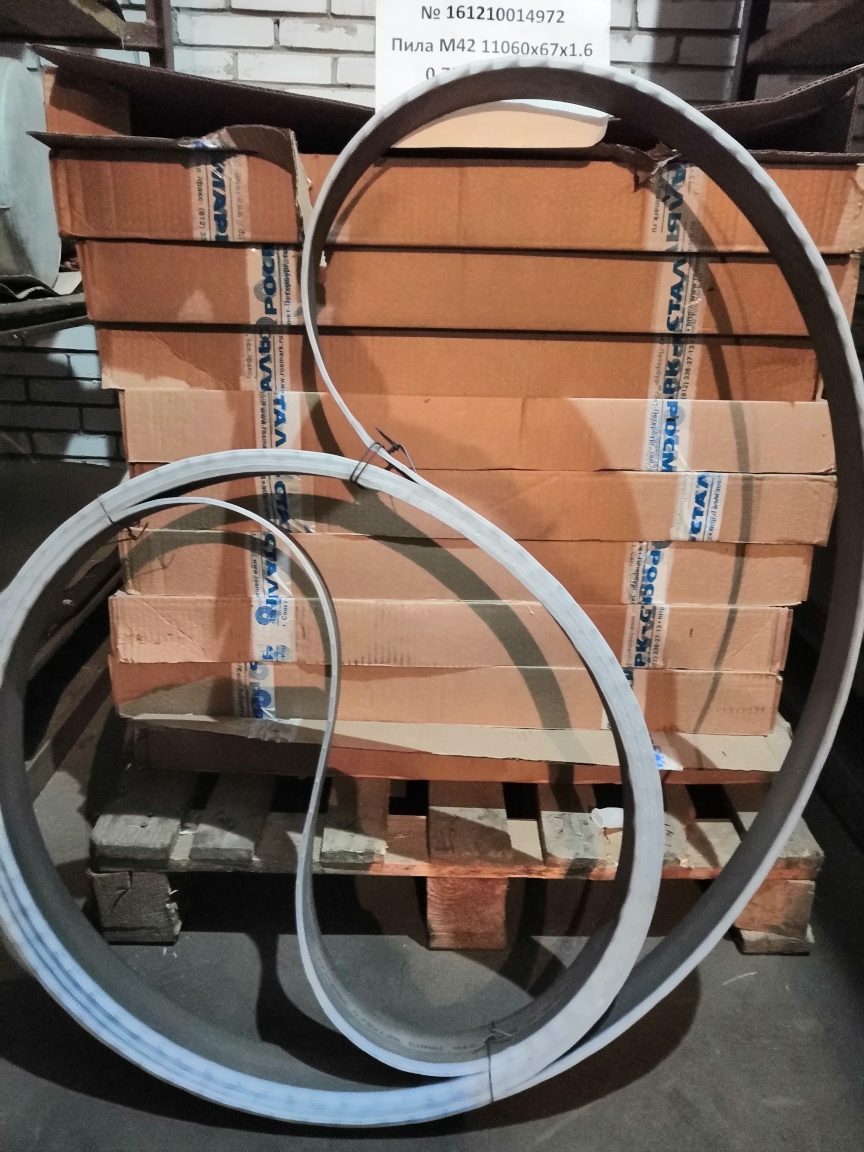 Биметаллические ленточные пилы RÖNTGEN bi-alfa cobalt с режущей кромкой из быстрорежущей стали – М51 (примерный аналог P10M4Ф4K10). Технические характеристики: Ширина - 67 мм., толщина - 1,6 мм., шаг - 0,75/1,25, длина 11060 мм. Производитель: ЗАО «Росмарк». Год выпуска: 2016.