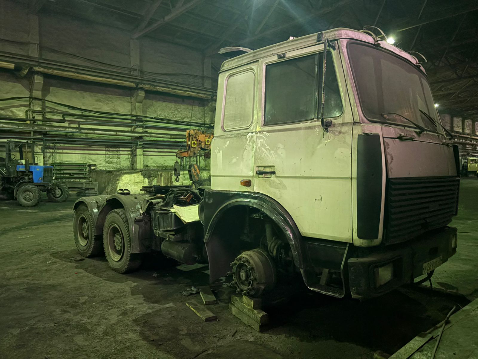 8. Техническое состояние: Требуется ремонт/замена кабины (коррозия днища, подкрылок кабины), имеются провары рам с приваренными металлическими накладками, требуется замена электропроводки (изоляция проводов высохла, постоянно трескается). Необходим кап.ремонт ДВС с заменой блока цилиндров, коленчатого вала, ЦПГ, головки блока цилиндров.